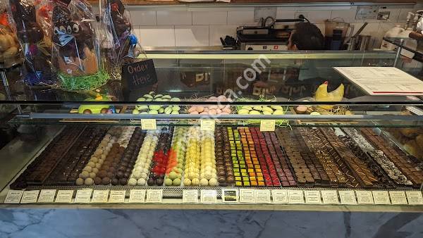 Airy space for acclaimed chocolatier's handcrafted sweets & pastries, plus soups & sandwiches.